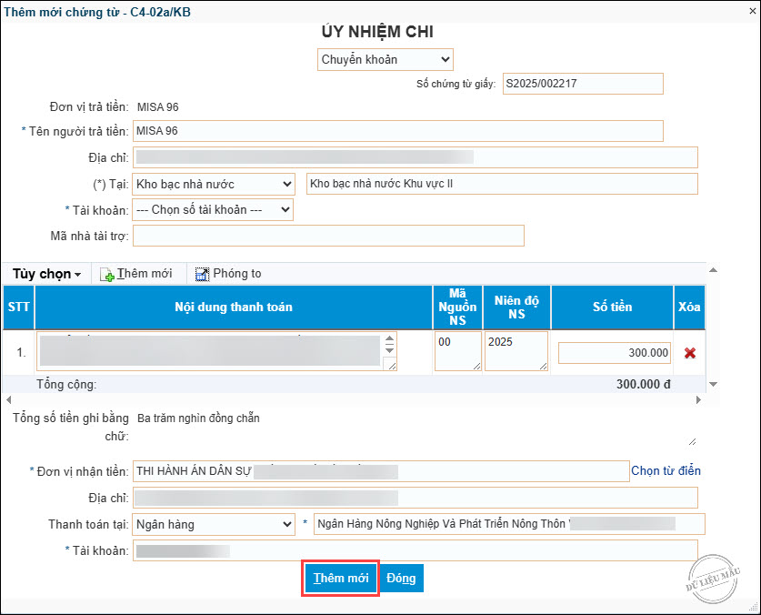 Giúp kế toán xuất được mẫu Ủy nhiệm chi để gửi lên DVC KBNN.