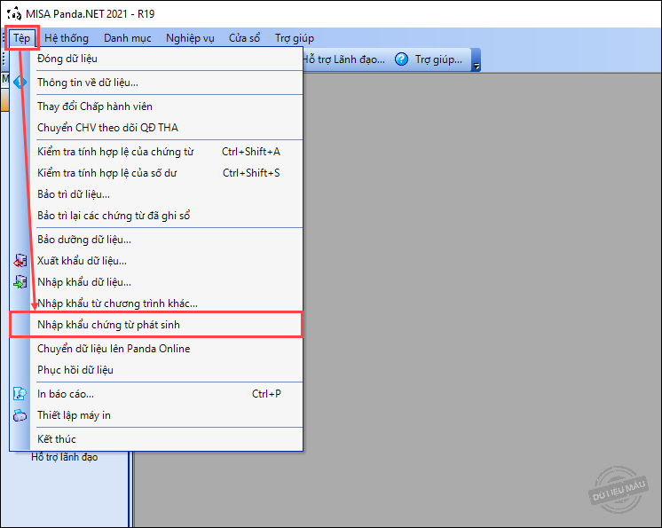 1. Vào Tệp, chọn Nhập khẩu chứng từ phát sinh.