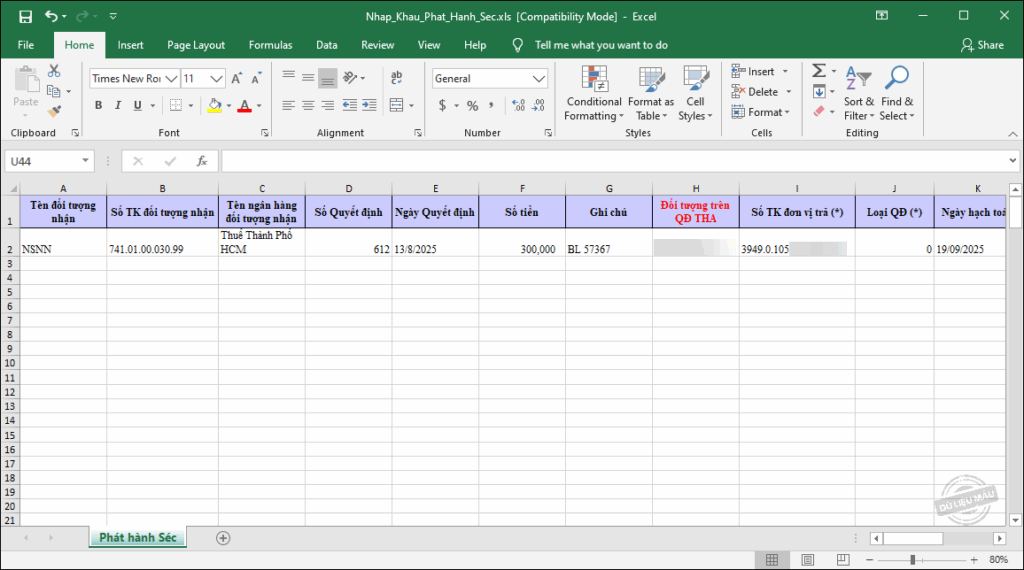 Cho phép nhập khẩu chứng từ phát hành séc từ file excel lên phần mềm.