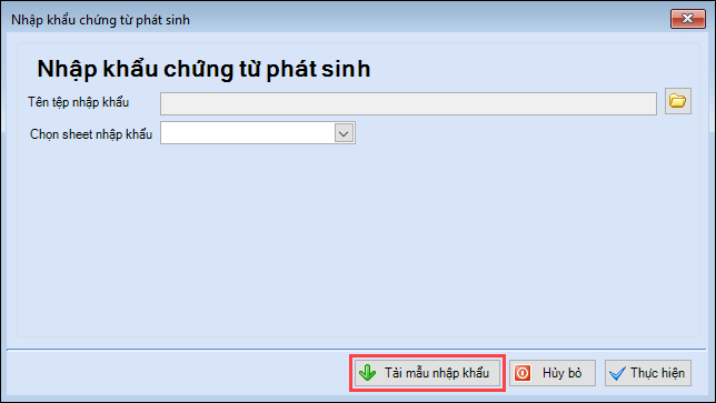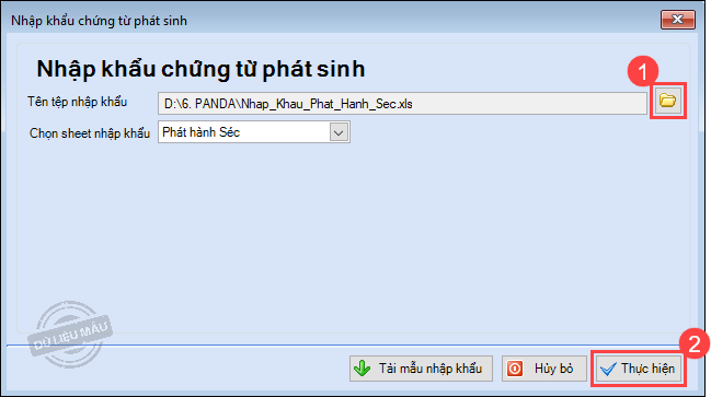 4. Nhấn vào biểu tượng thư mục ở cuối dòng Tên tệp nhập khẩu để chọn file cần nhập khẩu từ máy tính. Nhấn Thực hiện.