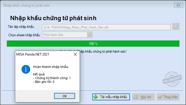 5. Sau khi hoàn thành nhập khẩu, chương trình sẽ thông báo kết quả. Nhấn Ok.